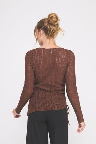 Asymmetrical Knit Lace Top – Brown