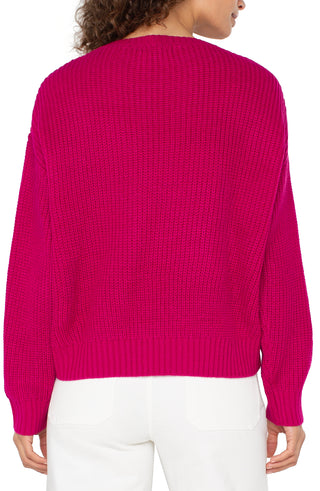 3/4 Juliette Sleeve Crew Neck Knit Top with Miter