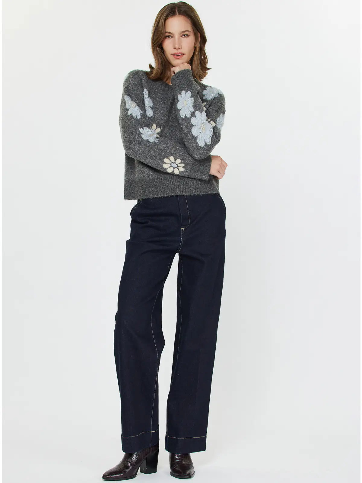 Cozy comfort meets timeless charm in the Floral Motif Crewneck Sweater. Crafted from soft brushed sweater fabric, this piece feels as good as it looks — lightweight, cozy, and perfect for layering as the seasons change. The standout detail? Beautiful floral motifs in contrast tones that bring a touch of femininity and boutique style to this classic silhouette.